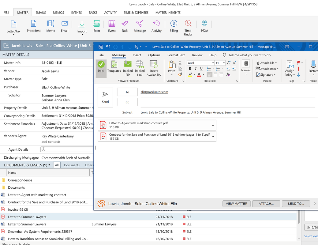 Smokeball’s Outlook integration turns your inbox into a matter management tool. Every client email and attachment is stored against the right matter, creating a complete, accurate record your whole team can trust.